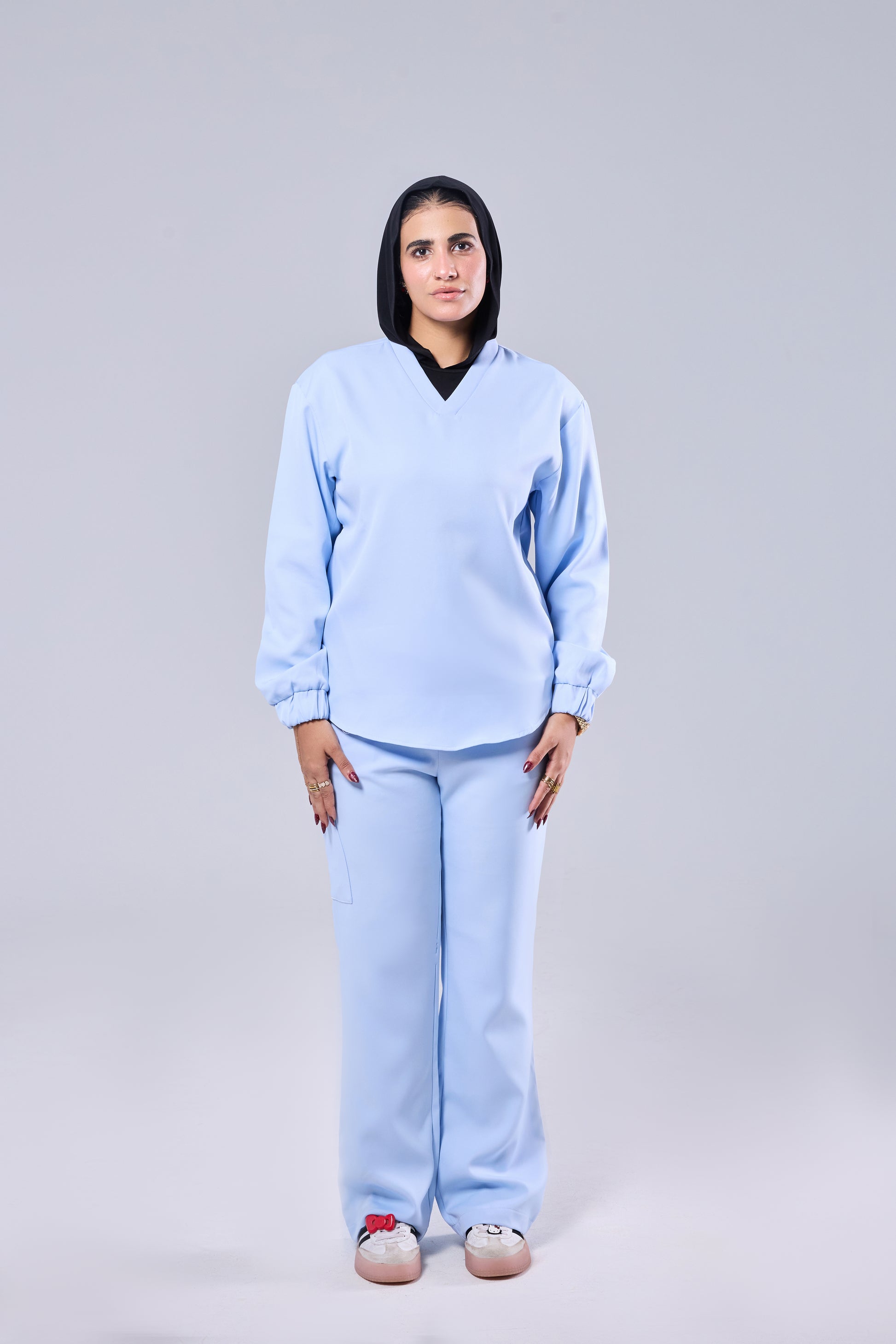 Stylish black medical scrub set featuring a relaxed hoodie top and straight-fit pants. Designed for comfort and ease of movement during long shifts, with soft breathable fabric and a modern professional look.
